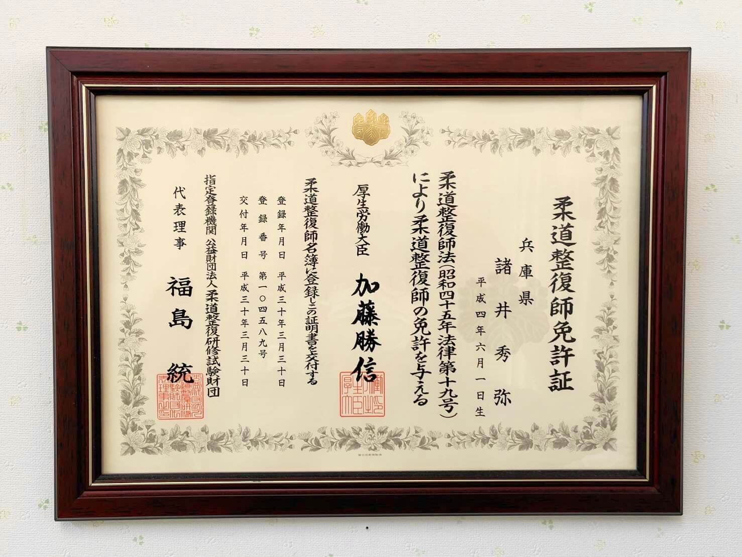 院長・副院長ともに柔道整復師(国家資格)を取得。解剖学や生理学を基礎に、体にやさしく安全な施術を行っています。整体が初めての方にも安心です。